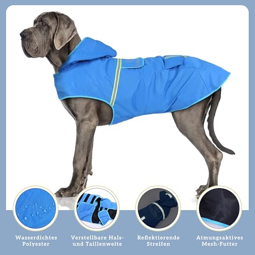 Bella & Balu Hunderegenmantel – Wasserdichter Hundemantel mit Kapuze und Reflektoren für trockene, sichere Gassigänge, den Hundespielplatz und den Urlaub mit Hund (S – Blau)