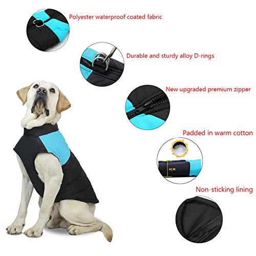 FEimaX Hundemantel für Hunde, Hundejacken Wasserdicht Warme Jacke für Kleine Mittelgroße Große Hunde Winterjacke Warm Gepolstert Welpen Weste Haustier Kleidung für Kaltes Wetter Blau