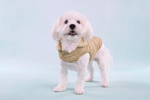 Flamingo Hundemantel – Bonnie – Beige – A: 35 cm | B: 34–38 cm | C: 50–54 cm – Premium Line – wasserabweisend, waschbar bei 30 °C, Klettverschluss, Plüschfutter