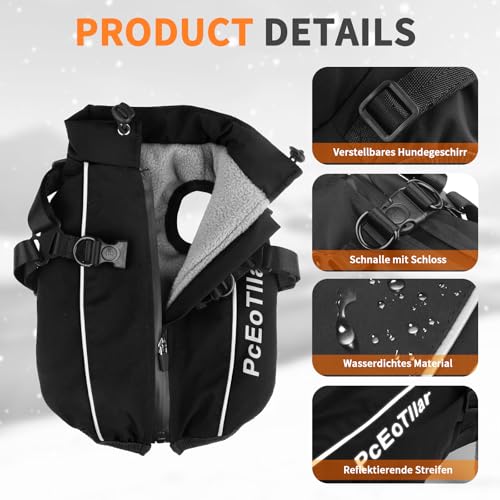 Details: PcEoTllar Wasserdichter Hundemantel für kleine Hunde, warme reflektierende Jacke mit Geschirr für den Winter, Ski-Kostüm, Baumwolle, Hundepullover