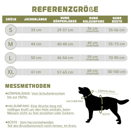 • GRÖSSE FÜR MITTELGROßE UND GROSSE HUNDE: Dieser wasserdichte Hundemantel wurde speziell für mittelgroße und große Hunde entworfen. Bitte überprüfen Sie vor der Bestellung die Größentabelle in den Bildern, um die passende Größe zu wählen.