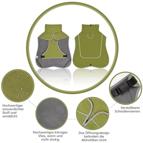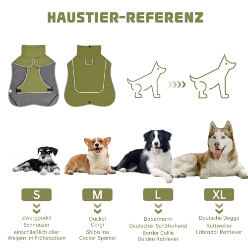 • ULTRAWARMES INNENFUTTER: Das Polarfleece-Material im Hundemantel bietet eine warme und bequeme Umarmung für Ihren geliebten Hund. Selbst an kalten Wintertagen können Sie bedenkenlos mit Ihrem Hund im Freien unterwegs sein.